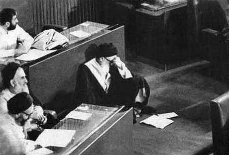این تصویر یکی از تصاویر ماندگار تاریخ انقلاب است. در این تصویر زمانی که اعضای مجلس خبرگان قانون اساسی برای مذاکرات پیشنویس این قانون وارد ساختمان مجلس مؤسسان سابق میشوند، مرحوم طالقانی رحمةالله علیه همانگونه که در تصویر ملاحظه میکنید، روی زمین مینشیند و وقتی سایرین بویژه مرحوم شهید بهشتی اصرار میورزند که آیتالله در جایگاه پیشبینیشده قرار گیرد، مرحوم طالقانی میفرماید کسی که روی این صندلیهای راحت نشست نمیتواند قانونی بنویسد که بدرد روی زمیننشستگان بخورد.