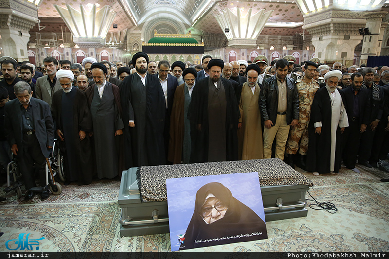حجتالاسلام و المسلمین سید حسن خمینی یادگار امام راحل(ع) نماز را بر پیکر مرحومه حدیدچی اقامه کرد.