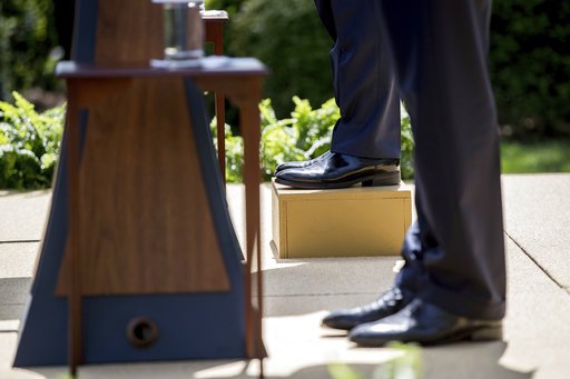 پادشاه اردن در حاشیه کنفرانس مطبوعاتی مشترک با رئیسجمهوری آمریکا در محوطه باغ ورودی کاخ سفید تلاش کرد که خود را هم قد با ترامپ نشان دهد.
