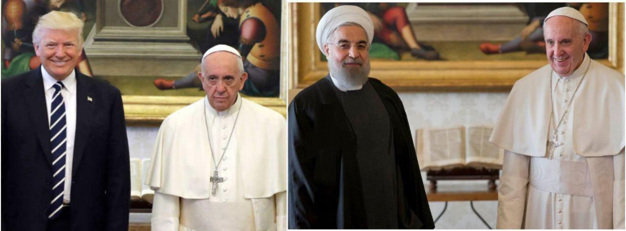 عکس/ عکس العمل متفاوت پاپ در ملاقات با رئیس جمهور روحانی و ترامپ
