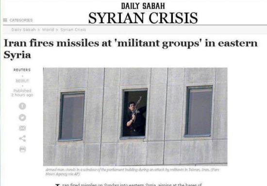 خرداد: تصویر جالب دیلی صباح که تیتر حمله موشکی ایران را زیر عکس تروریست مهاجم در مجلس درج کرده است تا پیام انتقام به روشنی به مخاطب منتقل شود