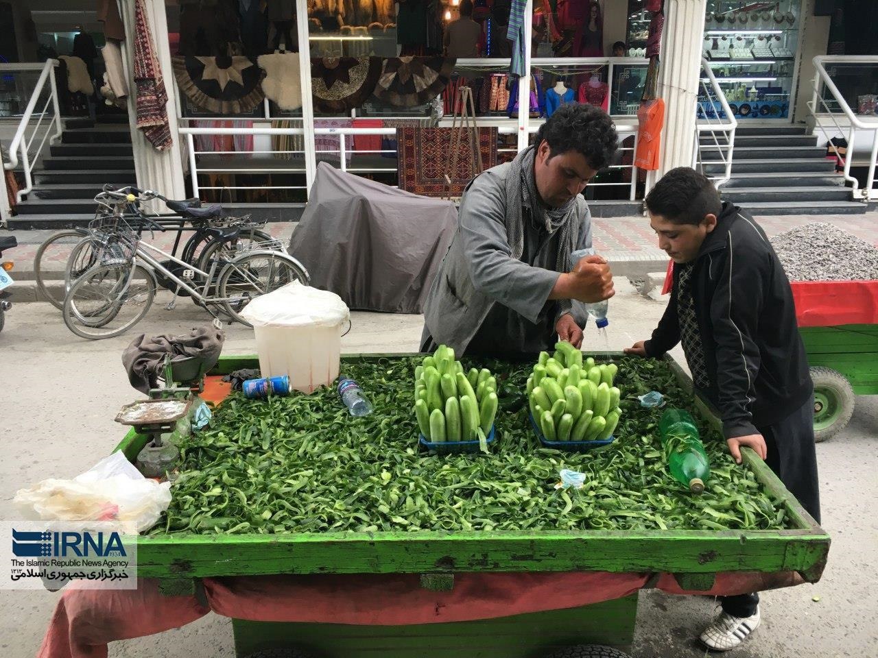 در تصویر زیر مردی را میبینید که با گاری در یکی از خیابان های کابل خیار پوست کنده میفروشد.