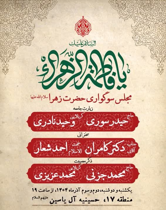شب دوم مجلس سوگواری حضرت زهرا(س) در هیئت انصارالخمینی(ره) 1404/9/3
