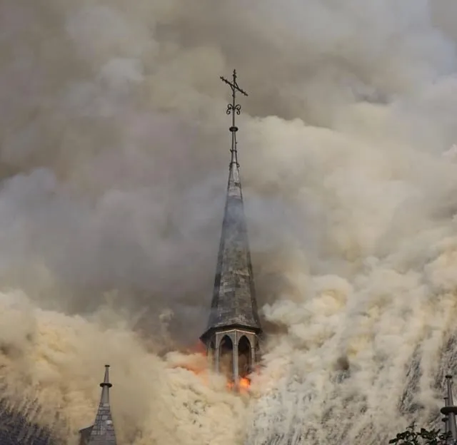 نمای بیرونی کلیسای وندلکرک در آتش سوزی