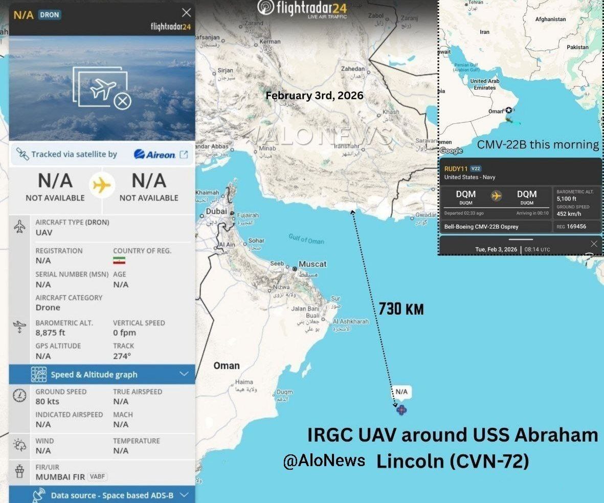 ناو هواپیمابر آبراهام لینکلن ۲۴ دی (۱۴ ژانویه) حرکتش را از دریای جنوب چین به سوی خاورمیانه آغاز کرد و بنابر گزاش‌ها در نزدیکی سواحل عمان است.