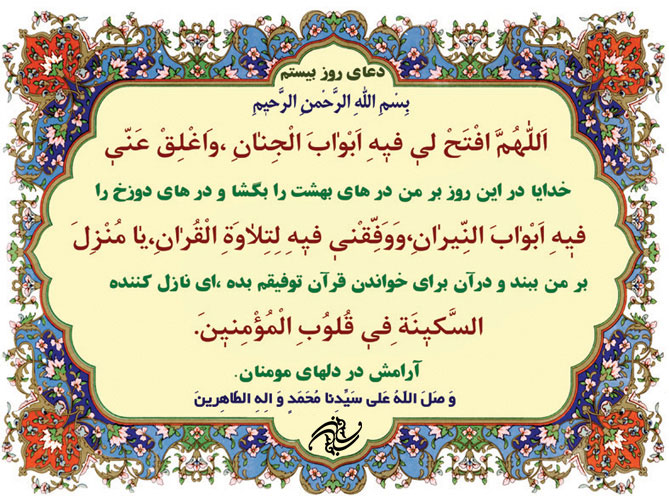 دعای روز بیست ماه رمضان