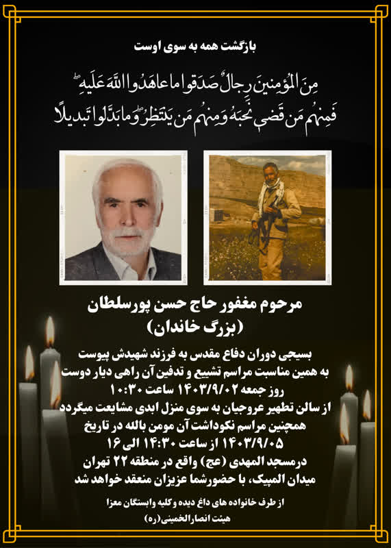 پوستر: اطلاعیه درگذشت حاج حسن پورسلطان پدر شهید علی اصغر