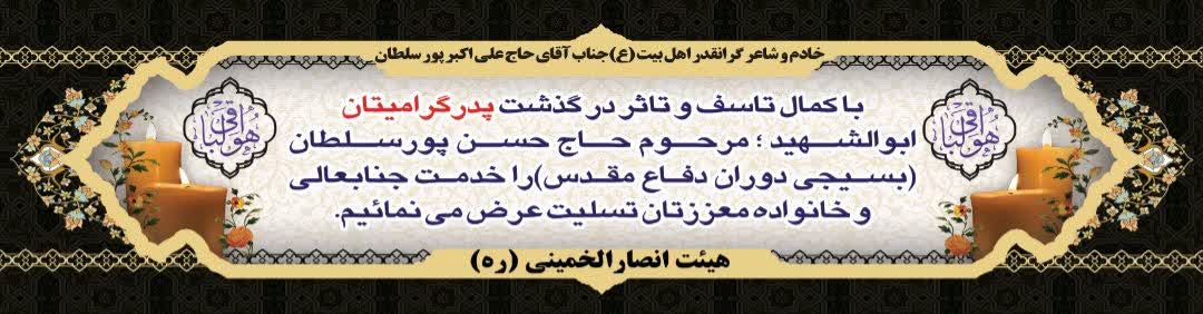 بنر تسلیت هئیت انصارالخمینی ، در پی درگذشت شادروان حاج حسن پورسلطان