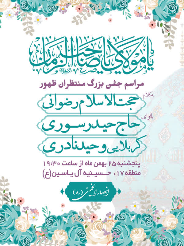 اطلاعیه: برگزاری مراسم جشن نیمه شعبان در هیئت انصارالخمینی (ره)