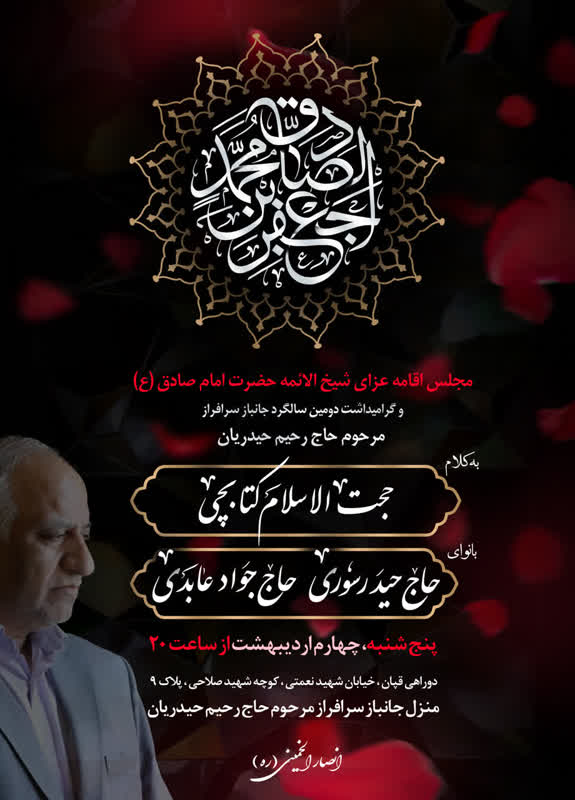 اطلاعیه: برگزاری مراسم سوگواری حضرت امام صادق (ع) در هیئت انصارالخمینی (ره)