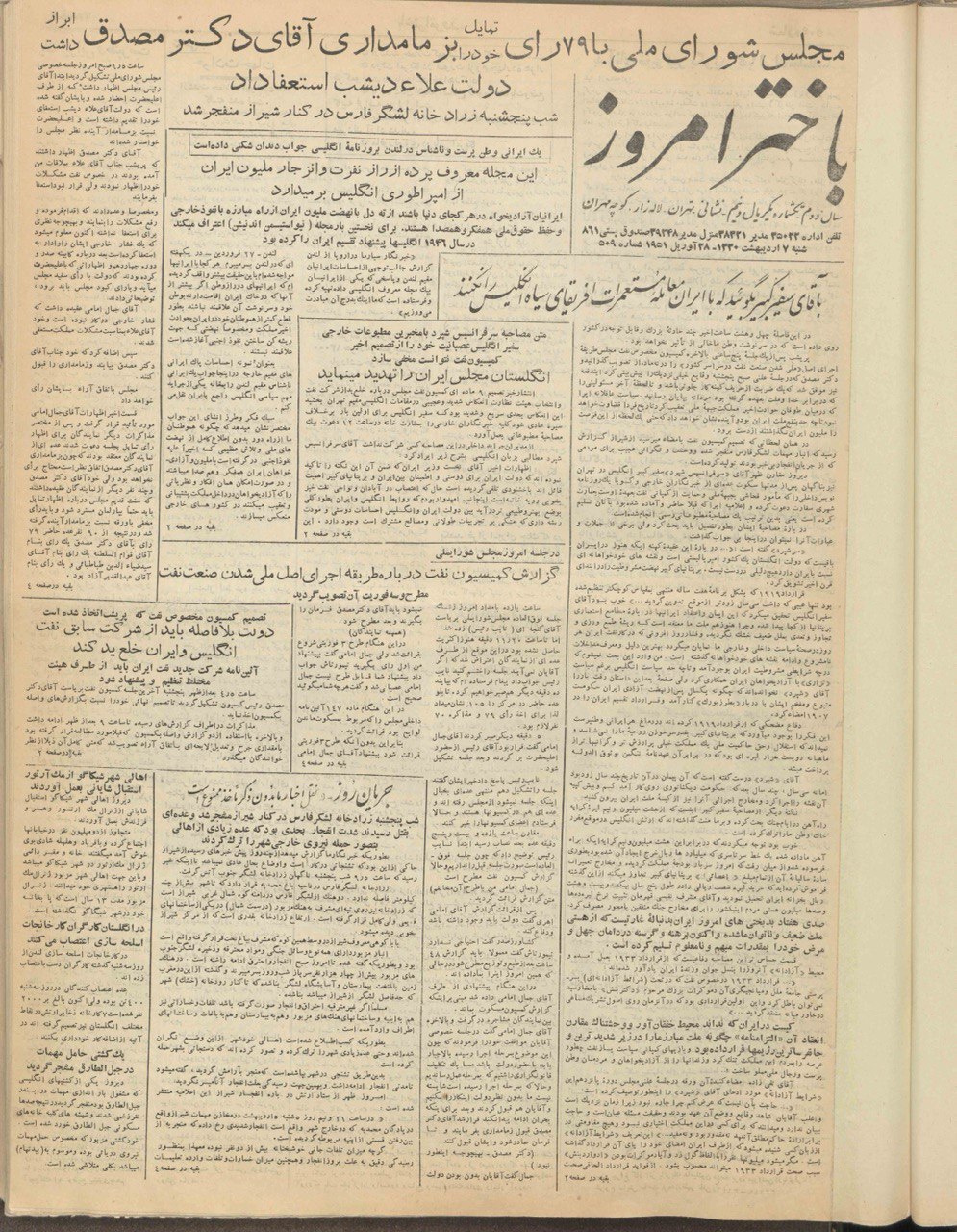 روزنامۀ باختر امروز در شمارۀ 7 اردیبهشت 1330 نوشت: