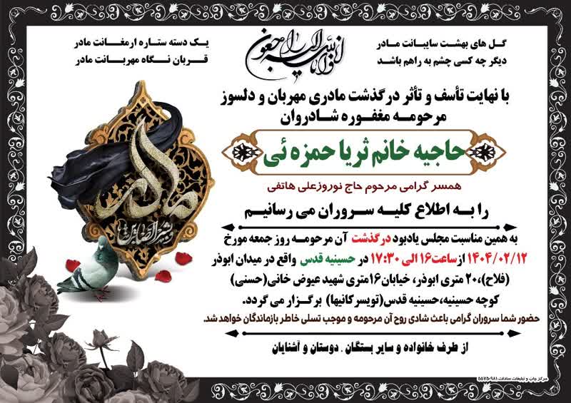 اطلاعیه بزرگداشت و تسلیت: والده ی ماجده ی اخوان هاتفی دعوت حق را لبیک گفت