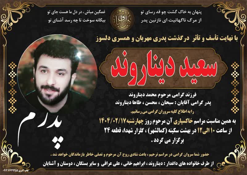 اطلاعیه تشییع و تسلیت: برادر بسیجی آقای سعید دیناروند به دیار دوست شتافت