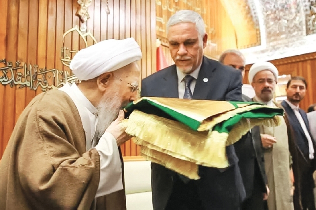 در این دیدار، سید عیسی خرسان تولیت حرم علوی ضمن خوشامدگویی به معظم‌له، گزارشی از فعالیت‌ها، خدمات و برنامه‌های جاری آستان قدس علوی را ارائه کرد. آیت‌الله جوادی آملی در سخنانی خطاب به تولیت آستان علوی بیان داشت: خداوند را شاکر باشید که توفیق خدمت در این بارگاه ملکوتی را به شما عنایت فرموده است؛ شما در آستان مقدسی خدمت می‌کنید که تالی‌تلو قرآن کریم است. این مرجع تقلید با اشاره به خدمات گسترده آستان علوی به زائران عتبات، به‌ویژه در ایام اربعین، تأکید کرد: مراسم باشکوه اربعین، افزون بر آنکه یک عبادت است، یک حرکت سیاسی و اجتماعی نیز به شمار می‌آید، چون موجب وحدت و همبستگی امت اسلامی می‌شود. آیت‌الله جوادی آملی همچنین تصریح کرد: قرآن و اهل‌بیت علیهم‌السلام همواره محور و عامل وحدت مسلمانان هستند.