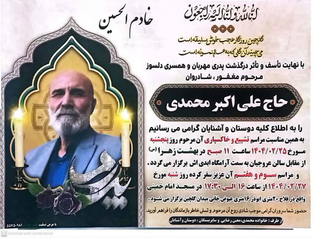 اطلاعیه نکوداشت و تسلیت: حاج علی اکبر محمدی دعوت حق را لبیک گفت