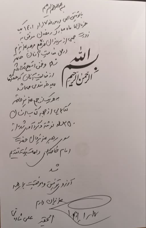 امام خمینی (ره) والله اسلام تمامش سیاست است؛ ***** مقام معظم رهبری: به گفتار امام و کردار امام اهتمام بورزید ***** امام خمینی(ره): ان شاء الله ما اندوه دلمان را در وقت مناسب با انتقام از امریکا و آل سعود برطرف خواهیم ساخت و داغ و حسرت حلاوت این جنایت بزرگ را بر دلشان خواهیم نهاد 1367/4/29 ***** امام خمینی(رحمة الله علیه) : حکومت آل سعود، این وهابیهای پست بیخبر از خدا بسان خنجرند که همیشه از پشت در قلب مسلمانان فرو رفته‌اند 1366/5/12***** امام خمینی (ره) شهادت در راه خدا مسئله ای نیست که بشود با پیروزی در صحنه های نبرد مقایسه شود، مقام شهادت خود اوج بندگی و سیر و سلوک در عالم معنویت است ***** امام خمینی (ره): ما تابع امر خداییم، به همین دلیل طالب شهادتیم و تنها به همین دلیل است که زیر بار ذلت و بندگی غیر خدا نمی رویم ***** امام خمینی(ره) ”من برای آنکه شما جوانان شایسته ای هستید، علاقه دارم که جوانی خود را در راه خداوند و اسلام عزیز و جمهوری اسلامی صرف کنید تا سعادت هر دو جهان را دریابید.„ ***** حُسنُ الخلاقِ یُدِّرُ الرزاقَ وَ یونِسَ الرِّفاقَ؛ خوش اخلاقى روزى ها را زیاد مى کند و میان دوستان انس و الفت پدید مى آورد. «نهج الفصاحه، ح 781»***** امام خمینی(س) علم همراه تهذیبِ نفس است که انسان را به مقام انسانیت می رساند .هم در علم کوشا باشید و هم در عمل و هم در تهذیب اخلاق ***** بايد مسائل اسلامي حل بشود در اينجا و پياده بشود. بايد مستضعفين را حمايت بكنند، بايد مستضعفين تقويت بشوند حضرت امام خميني قدس سره الشريف صحیفه امام – جلد 6 – صفحه 461 ***** اهمیّت فضای مجازی به انداره ی انقلاب اسلامی است "مقام معظم رهبری" ***** آن کسی قلمش قلم انسانی است که از روی انصاف بنویسد. امام خمینی (ره) ***** همان طوري که در سابق عمل مي‌شد، روضه‌خواني بشود، مرثيه گفته بشود، شعر و نثر در فضايل اهل بيت و در مصائب آنها گفته بشود. حضرت امام خميني قدس سره الشريف صحيفه امام – جلد 15 – ص 332 ***** نگذاريد پيشكسوتان شهادت و خون در پيچ و خم زندگي روزمره خود به فراموشي سپرده شوند. حضرت امام خميني قدس سره الشريف صحيفه امام، ج 21، ص 93 ***** من در ميان شما باشم و يا نباشم، به همه شما وصيت و سفارش مي‌کنم که نگذاريد انقلاب به دست نااهلان و نامحرمان بيفتد. حضرت امام خميني قدس سره الشريف صحيفه امام، ج 21، ص 93 ***** پيامبر اسلام نيازي به مساجد اشرافي و مناره‌هاي تزئيناتي ندارد. پيامبر اسلام دنبال مجد و عظمت پيروان خود بوده است که متأسفانه با سياست‌هاي غلط حاکمان دست‌نشانده به خاک مذلت نشسته‌اند. حضرت امام خميني قدس سره الشريف صحيفه امام، ج 21، ص 80 ***** پيغمبر اسلام تمام عمرش در امور سياسي بود، تمام عمرش را صرف كرد در سياست اسلامي، و حكومت اسلامي تشكيل داد. حضرت امام خميني قدس سره الشريف صحيفه امام، ج 15، ص 11 ***** امام به همه فهماند که انسان کامل شدن، علی وار زیستن و تا نزدیکی مرزهای عصمت پیش رفتن افسانه نیست. مقام معظم رهبری ***** راه ما راه امام خمینی است و در این راه با همه قدرت و قاطعیت خود حرکت خواهیم کرد. مقام معظم رهبری