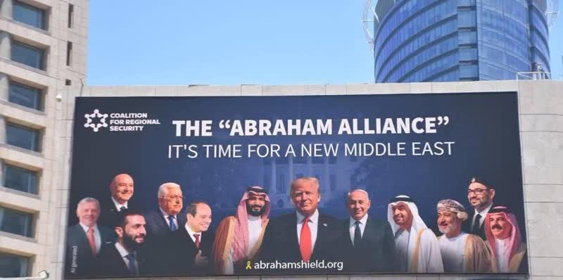 تصویری از بیلبوردهایی با تیتر «صلح ابراهیم» در سطح شهر تل آویو
