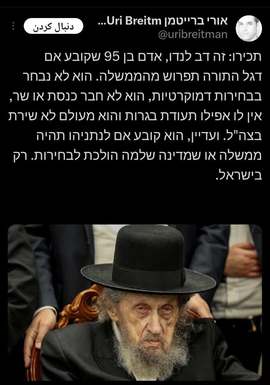 یوری بریتمن، فعال اجتماعی صهیونیست در واکنش به تهدید احزاب حریدی به خروج از دولت نتانیاهو و اقدام برای انحلال دولت نوشت: