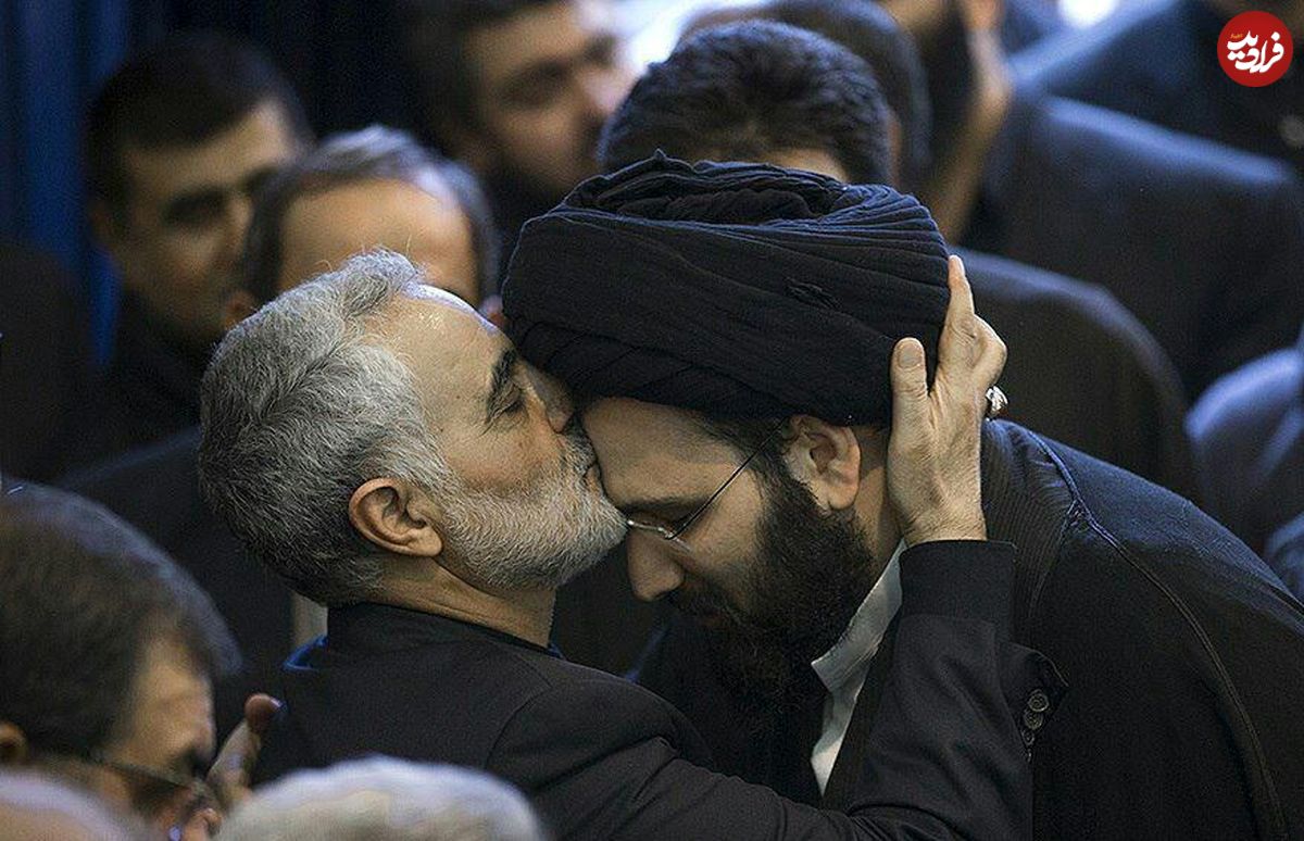 عکس؛ سفر به تاریخ؛ دیدار صمیمانۀ «سردار سلیمانی» با «علی خمینی، نوۀ امام خمینی»؛ دهۀ 90
