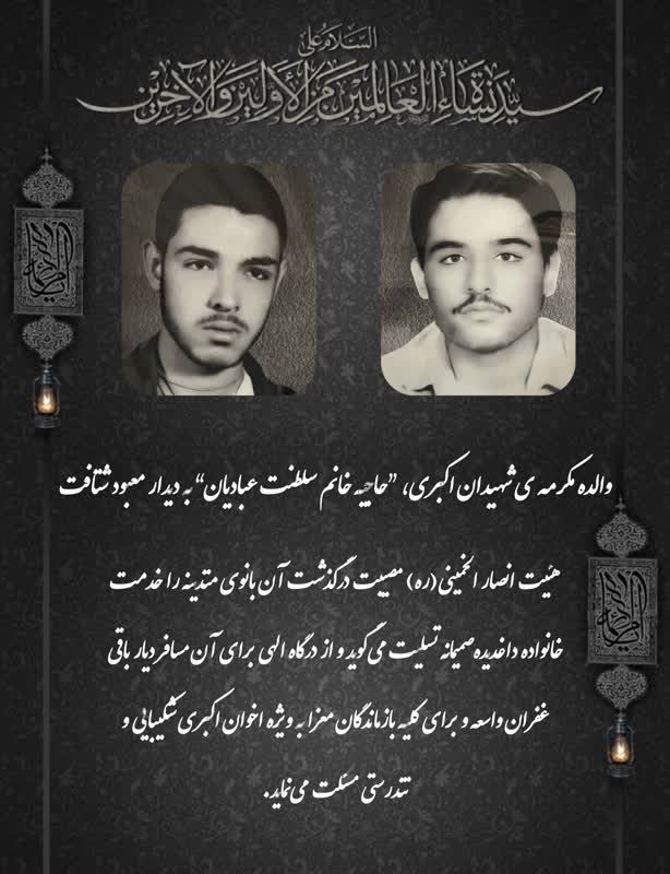 اطلاعیه درگذشت و تسلیت والده ی ماجده ی شهیدان اکبری به دیار معبود شتافت