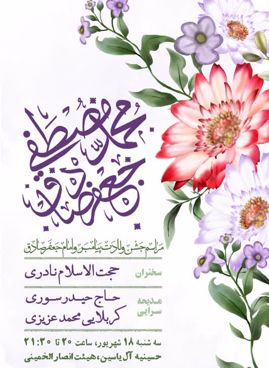 اطلاعیه: برگزاری مراسم جشن میلاد نبی مکرم اسلام (ص) و امام جعفر صادق (ع) در هیئت انصارالخمینی (ره)