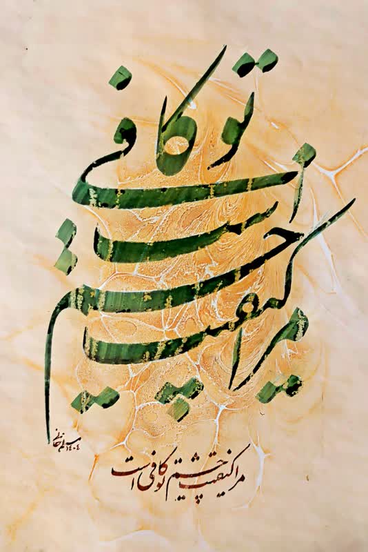 اختصاصی: برگرفته از دو بیتی شماره 35 بابا طاهر، با خطاطی آقای محمد مسلم خانی