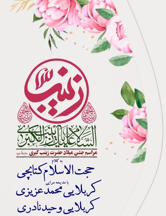 جشن میلاد باسعادت مظهر صبر و استقامت، مهر وعاطفه، معرفت و ایمان، ستاره‌ درخشان در میان کواکب آسمان معصومین علیهم السلام، پیام‌رسان قهرمان کربلا و الگوی پرستاران، حضرت زینب کبری سلام الله علیها برگزار می شود.