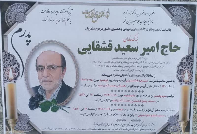 اطلاعیه درگذشت ، بزرگداشت و تسلیت: حاج امیر سعید قشقایی دعوت حق را لبیک گفت