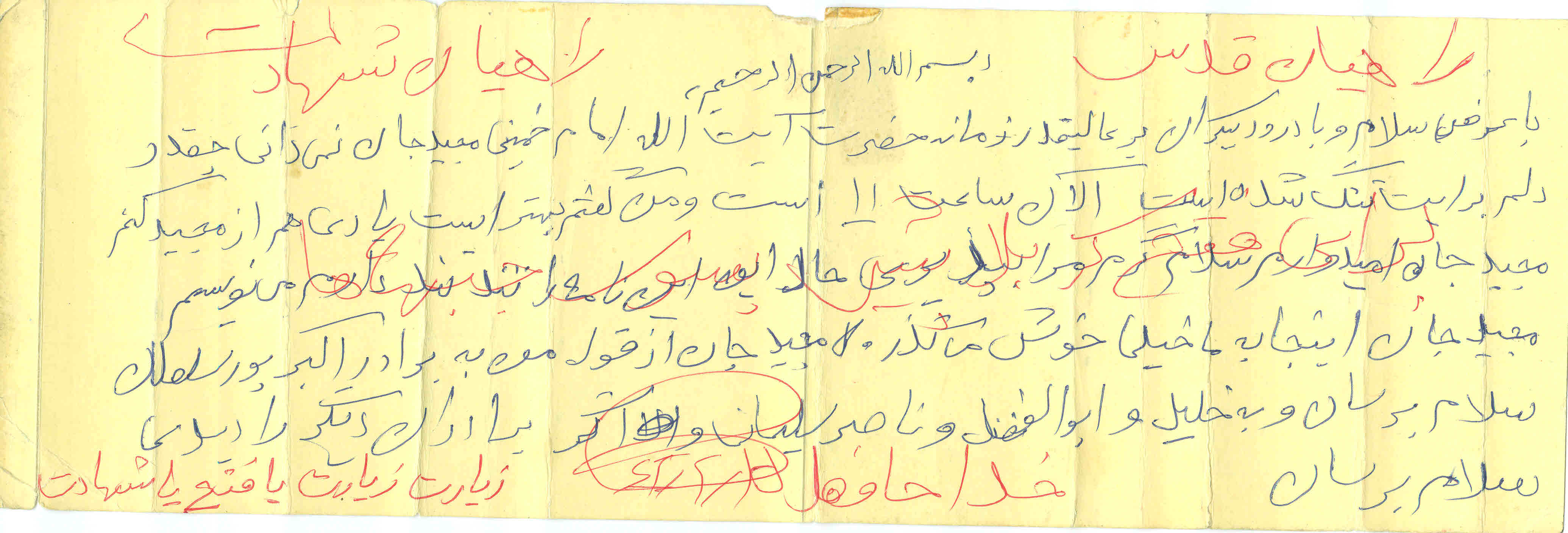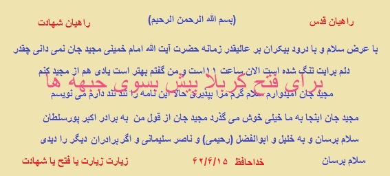 اختصاصی / نامه منتشر نشده ای از شهید والا مقام مهرداد بیات خطاب به جناب آقای مجید رحیمی "مسئول محترم هیئت انصارالخمینی (ره)"
