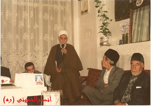حجت الاسلام والمسلمین حاج شیخ اسدالله مقدم هنگام سخنرانی در منزل شهید حمید رحیمی