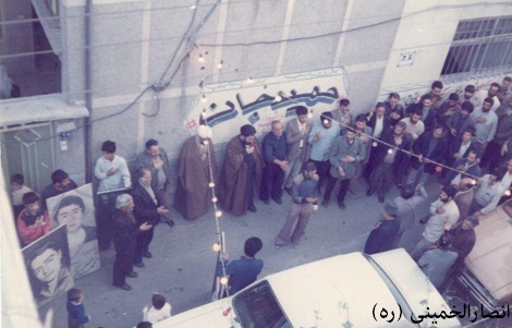 تصویری از تجدید پیمان نمازگزاران مسجد امام خمینی(ره) با شهید والامقام حمید رحیمی (اردیبهشت 1361)