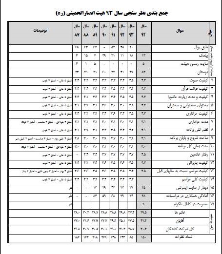 جدول و نمودار نتایج نظر سنجی عملکرد هیئت انصارالخمینی (ره) در دهه اول محرم امسال
