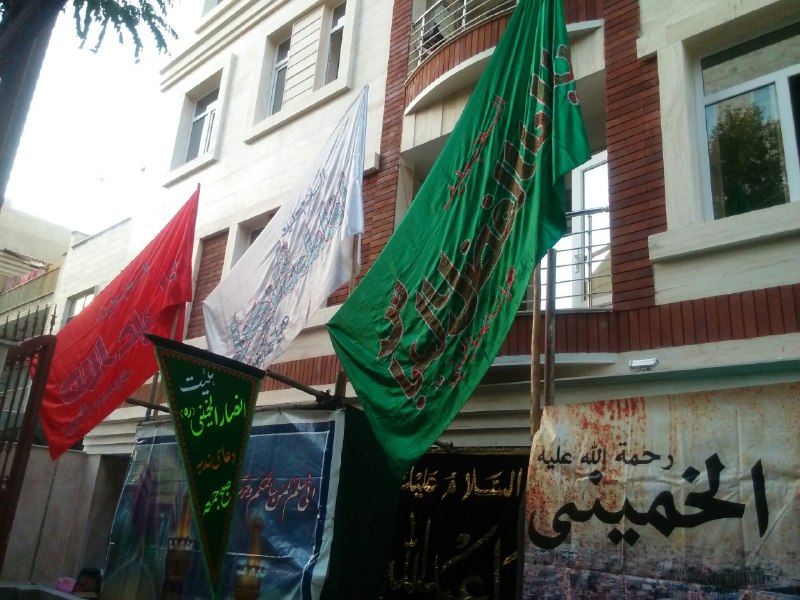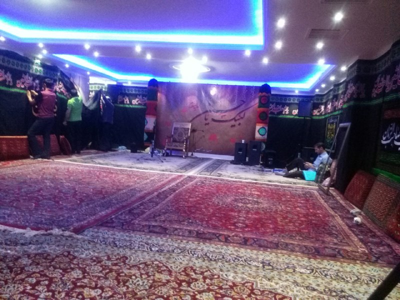 دو تصویر از نمای درونی و بیرونی محل برگزاری مراسم هیئت انصارالخمینی(ره)
