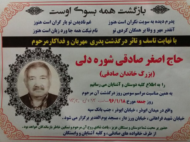 اطلاعیه؛ حاج اصغر صادقی دعوت حق را لبیک گفت