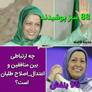 گفت سايت رييسی با درج عکس مريم رجوی نوشته 88 سبز پوشیدند 96 بنفش چه ارتباطی میان آل رجوی با اعتدال_ اصلاح طلبان وجود دارد؟ چرا منافقین از روحانی حمایت می کنند.