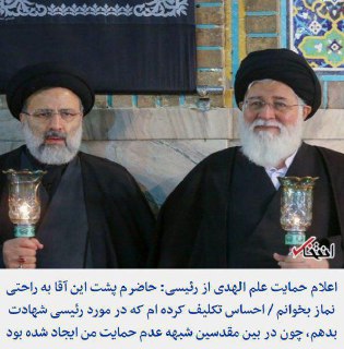 گفت: علم الهدی از رييسی حمایت می کند و حاضر است پشت رييسی نماز بخواند.
