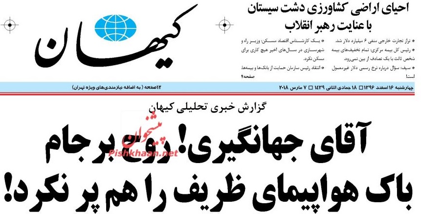 گفت: نتانیاهو نخست وزیر رژیم صهیونیستی نیز دیروز در سخنرانی ایپک ضمن حمله به ایران و سپاسگزاری از مواضع ضد برجامی ترامپ اظهار کرد اگر ترامپ تصمیم به خروج از این توافق بگیرد اسرائیل تمام ‌قد در کنار ایالات متحده خواهد ایستاد. روزنامه کیهان نیز طی دیروز و امروز با انتخاب دو تیتر اول ضد برجام در همسویی و همنوایی با نتانیاهو صهیونیسم بر ضرورت اصلاح یا خروج ایران از برجام تاکید کرد.