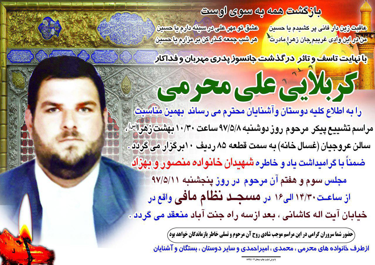 اطلاعیه بزرگداشت و تسلیت: کربلایی علی محرمی به دیار دوست شتافت