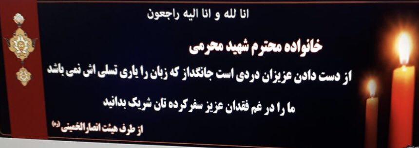 به بهانه درگذشت زنده یاد علی محرمی بنر تسلیت هیئت انصارالخمینی (ره) به خانواده محترم شهید محرمی