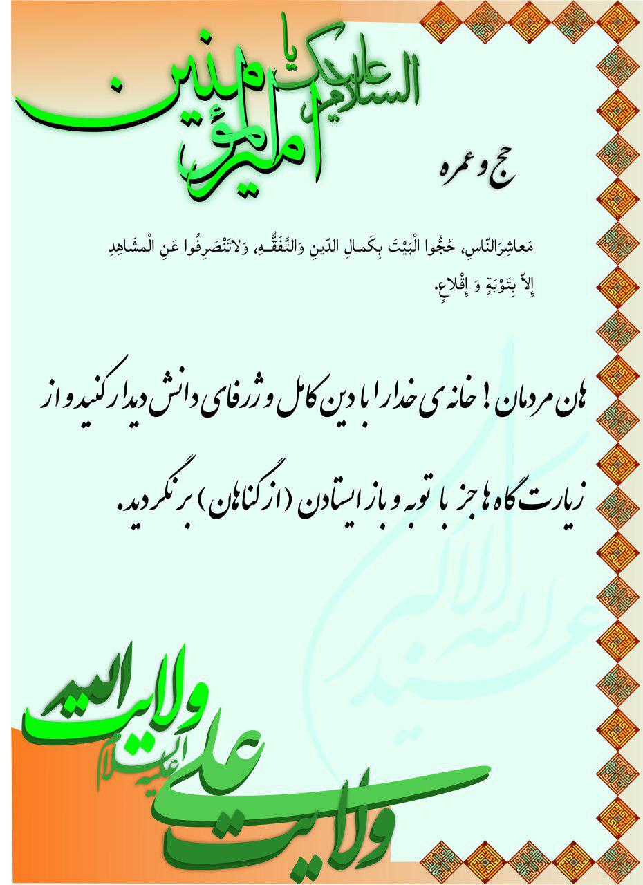 امام خمینی (ره) والله اسلام تمامش سیاست است؛ ***** مقام معظم رهبری: به گفتار امام و کردار امام اهتمام بورزید ***** امام خمینی(ره): ان شاء الله ما اندوه دلمان را در وقت مناسب با انتقام از امریکا و آل سعود برطرف خواهیم ساخت و داغ و حسرت حلاوت این جنایت بزرگ را بر دلشان خواهیم نهاد 1367/4/29 ***** امام خمینی(رحمة الله علیه) : حکومت آل سعود، این وهابیهای پست بیخبر از خدا بسان خنجرند که همیشه از پشت در قلب مسلمانان فرو رفته‌اند 1366/5/12***** امام خمینی (ره) شهادت در راه خدا مسئله ای نیست که بشود با پیروزی در صحنه های نبرد مقایسه شود، مقام شهادت خود اوج بندگی و سیر و سلوک در عالم معنویت است ***** امام خمینی (ره): ما تابع امر خداییم، به همین دلیل طالب شهادتیم و تنها به همین دلیل است که زیر بار ذلت و بندگی غیر خدا نمی رویم ***** امام خمینی(ره) ”من برای آنکه شما جوانان شایسته ای هستید، علاقه دارم که جوانی خود را در راه خداوند و اسلام عزیز و جمهوری اسلامی صرف کنید تا سعادت هر دو جهان را دریابید.„ ***** حُسنُ الخلاقِ یُدِّرُ الرزاقَ وَ یونِسَ الرِّفاقَ؛ خوش اخلاقى روزى ها را زیاد مى کند و میان دوستان انس و الفت پدید مى آورد. «نهج الفصاحه، ح 781»***** امام خمینی(س) علم همراه تهذیبِ نفس است که انسان را به مقام انسانیت می رساند .هم در علم کوشا باشید و هم در عمل و هم در تهذیب اخلاق ***** بايد مسائل اسلامي حل بشود در اينجا و پياده بشود. بايد مستضعفين را حمايت بكنند، بايد مستضعفين تقويت بشوند حضرت امام خميني قدس سره الشريف صحیفه امام – جلد 6 – صفحه 461 ***** اهمیّت فضای مجازی به انداره ی انقلاب اسلامی است "مقام معظم رهبری" ***** آن کسی قلمش قلم انسانی است که از روی انصاف بنویسد. امام خمینی (ره) ***** همان طوري که در سابق عمل مي‌شد، روضه‌خواني بشود، مرثيه گفته بشود، شعر و نثر در فضايل اهل بيت و در مصائب آنها گفته بشود. حضرت امام خميني قدس سره الشريف صحيفه امام – جلد 15 – ص 332 ***** نگذاريد پيشكسوتان شهادت و خون در پيچ و خم زندگي روزمره خود به فراموشي سپرده شوند. حضرت امام خميني قدس سره الشريف صحيفه امام، ج 21، ص 93 ***** من در ميان شما باشم و يا نباشم، به همه شما وصيت و سفارش مي‌کنم که نگذاريد انقلاب به دست نااهلان و نامحرمان بيفتد. حضرت امام خميني قدس سره الشريف صحيفه امام، ج 21، ص 93 ***** پيامبر اسلام نيازي به مساجد اشرافي و مناره‌هاي تزئيناتي ندارد. پيامبر اسلام دنبال مجد و عظمت پيروان خود بوده است که متأسفانه با سياست‌هاي غلط حاکمان دست‌نشانده به خاک مذلت نشسته‌اند. حضرت امام خميني قدس سره الشريف صحيفه امام، ج 21، ص 80 ***** پيغمبر اسلام تمام عمرش در امور سياسي بود، تمام عمرش را صرف كرد در سياست اسلامي، و حكومت اسلامي تشكيل داد. حضرت امام خميني قدس سره الشريف صحيفه امام، ج 15، ص 11 ***** امام به همه فهماند که انسان کامل شدن، علی وار زیستن و تا نزدیکی مرزهای عصمت پیش رفتن افسانه نیست. مقام معظم رهبری ***** راه ما راه امام خمینی است و در این راه با همه قدرت و قاطعیت خود حرکت خواهیم کرد. مقام معظم رهبری