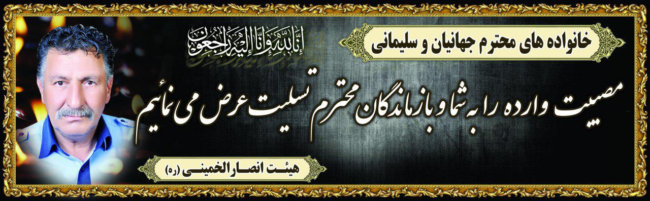 بنر تسلیت هیئت انصارالخمینی(ره) بمناسبت درگذشت مرحوم مغفور آقای احمد جهانیان