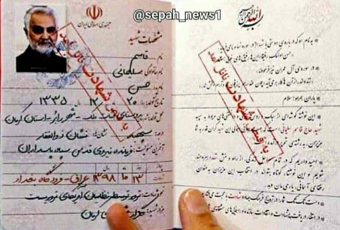تصویری از شناسنامه جدید شهید حاج قاسم سلیمانی