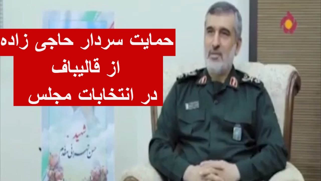 * سردار حاجی زاده با قرار گرفتن کنار تصویر شهید تهرانی مقدم که باید نماد مقاومت ایران باشد در اظهارات تبلیغاتی مدعی شد مدیران تحول گرا مانند قالیباف می‌توانند مشکل اقتصاد کشور را حل کنند.