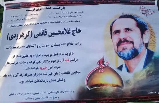 کلیه ی مشایعت کنندگان مغزا و عزیزانی که در قرنطینه بسر می برند، برای شادی روح پاک آن مرحوم مغفور ، اولیاء جنت مکان و برادر شهیدش ، سوره های حمد و توحید را قرائت فرمایید .