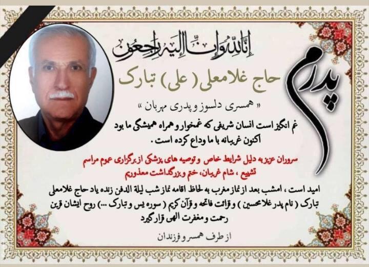 اطلاعیه تسلیت هیئت انصارالخمینی (ره): در پی درگذشت مرحوم مغفور زنده یاد حاج غلامعلی (علی) تبارک