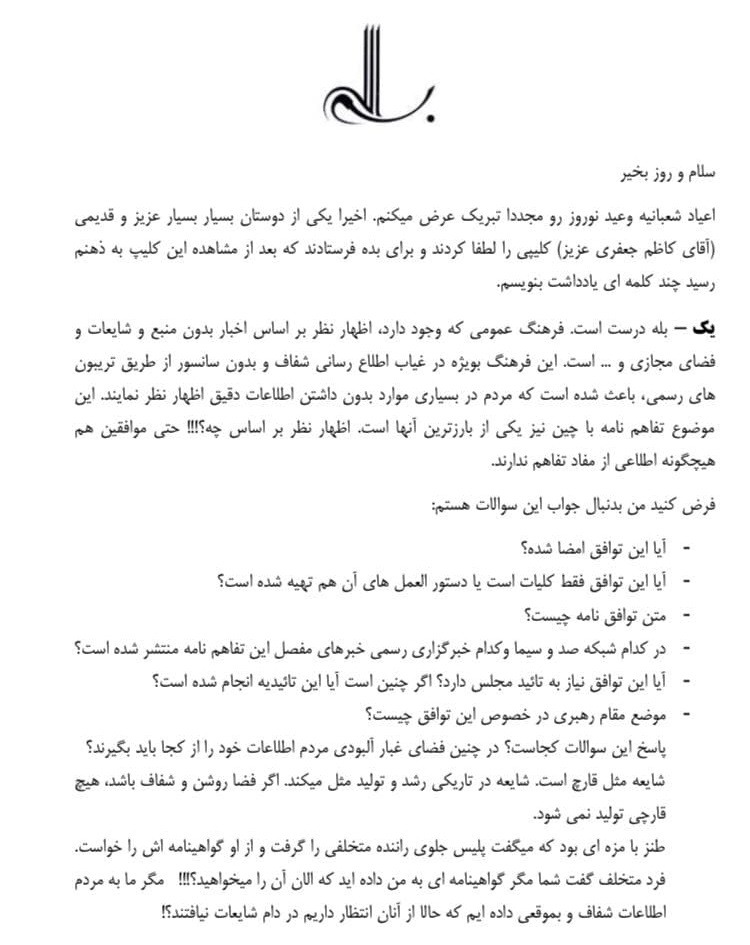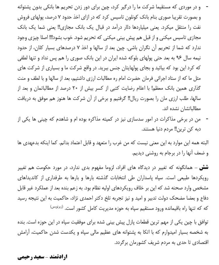 یادداشتی از مهندس سعید رحیمی پیرامون توافق 25 ساله ایران با چین و ...
