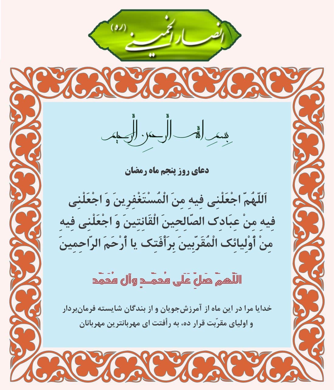 به همت خانم شیرین نوشیروان دعای روز پنجم ماه مبارک رمضان