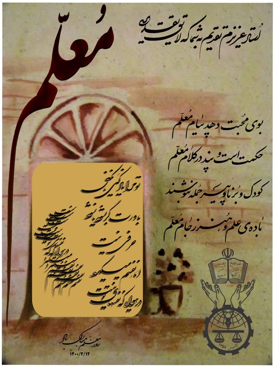 به همت خانم شیرین نوشیروان روز معلم گرامی باد ، طراح پوستر : علی اکبر میرزایی
