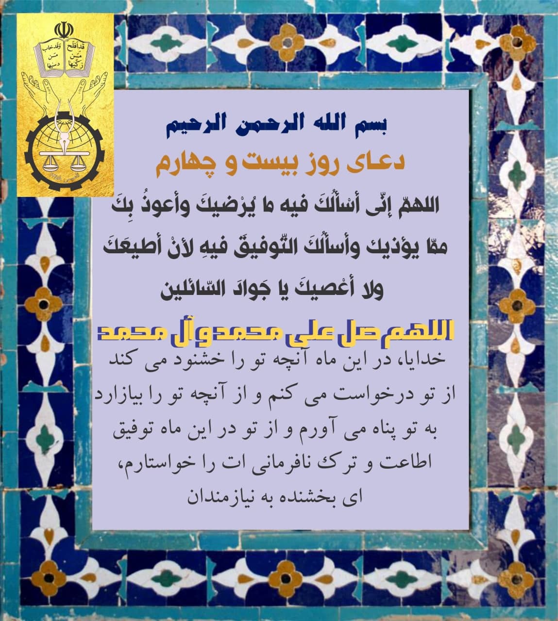 به همت خانم شیرین نوشیروان دعای روز بیست و چهارم ماه مبارک رمضان
