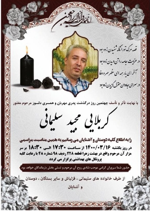 اطلاعیه برگزاری مراسم بزرگداشت زنده یاد کربلایی مجید سلیمانی
